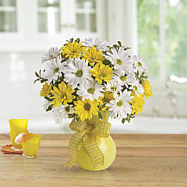 Price: $34.95 Teleflora's Upsy Daisy * Vase & Ribbon May Be Substituted Product Tags: Same-day Delivery